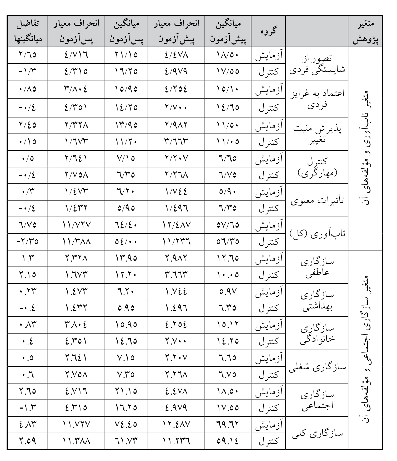 این نتایج نشان میدهد که هر یک از مؤلفهها (راهبردها، شرایط بستر، شرایط مداخلهگر، مقوله علی، مقولهمحوری و پیامدها) بهخوبی از یکدیگر متمایز بوده و سنجش آنها بهصورت مستقل انجامپذیر است.