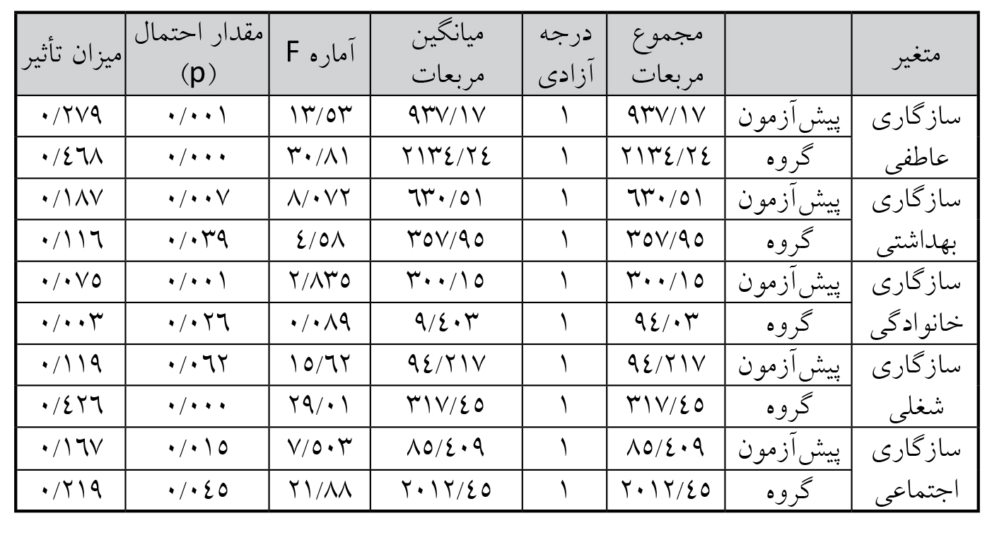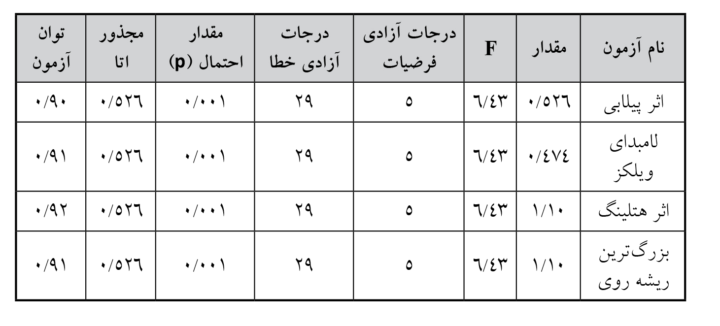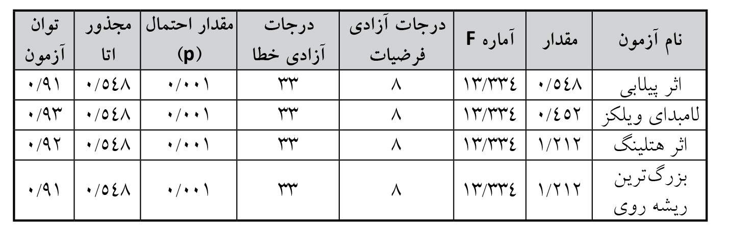 جدول 5- نتایج حاصل از آزمون کولموگروف-اسمیرنف